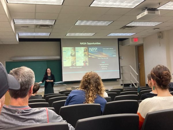 Dr. Kathleen Miller is an alumnus of the Kinesiology program, having received her BS, MS, and Ph.D. here. Today she was invited back to the program to speak at the graduate student seminar. She currently works at National Institute of Aerospace (NASA) as a Research Scientist and her presentation was titled “Ionizing Radiation and the Central Nervous System: Thinking about the Brain in Space.”